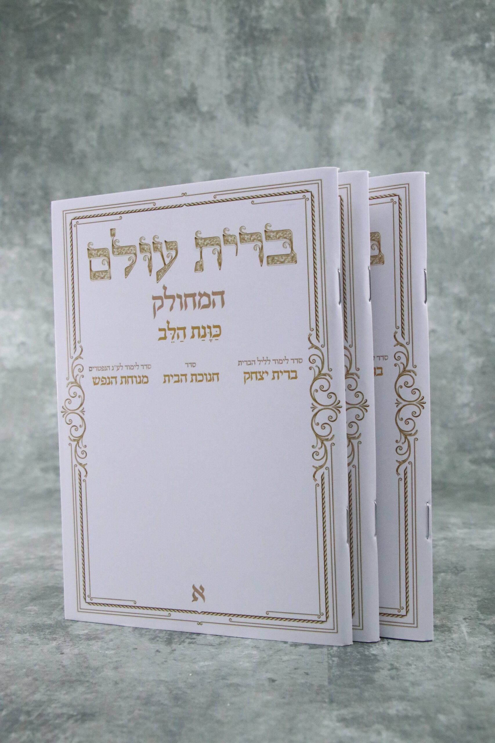 ספר בינוני כריכה קשה בציפוי למינציה מבריקה. כולל בתוכו: סדר ברית יצחק, חנוכת הבית, מנוחת הנפש (משניות לעילוי נשמת הנפטר) גודל הספר: 12*17 ס"מ.ניתן להוסיף הקדשה אישית לפי בחירה.