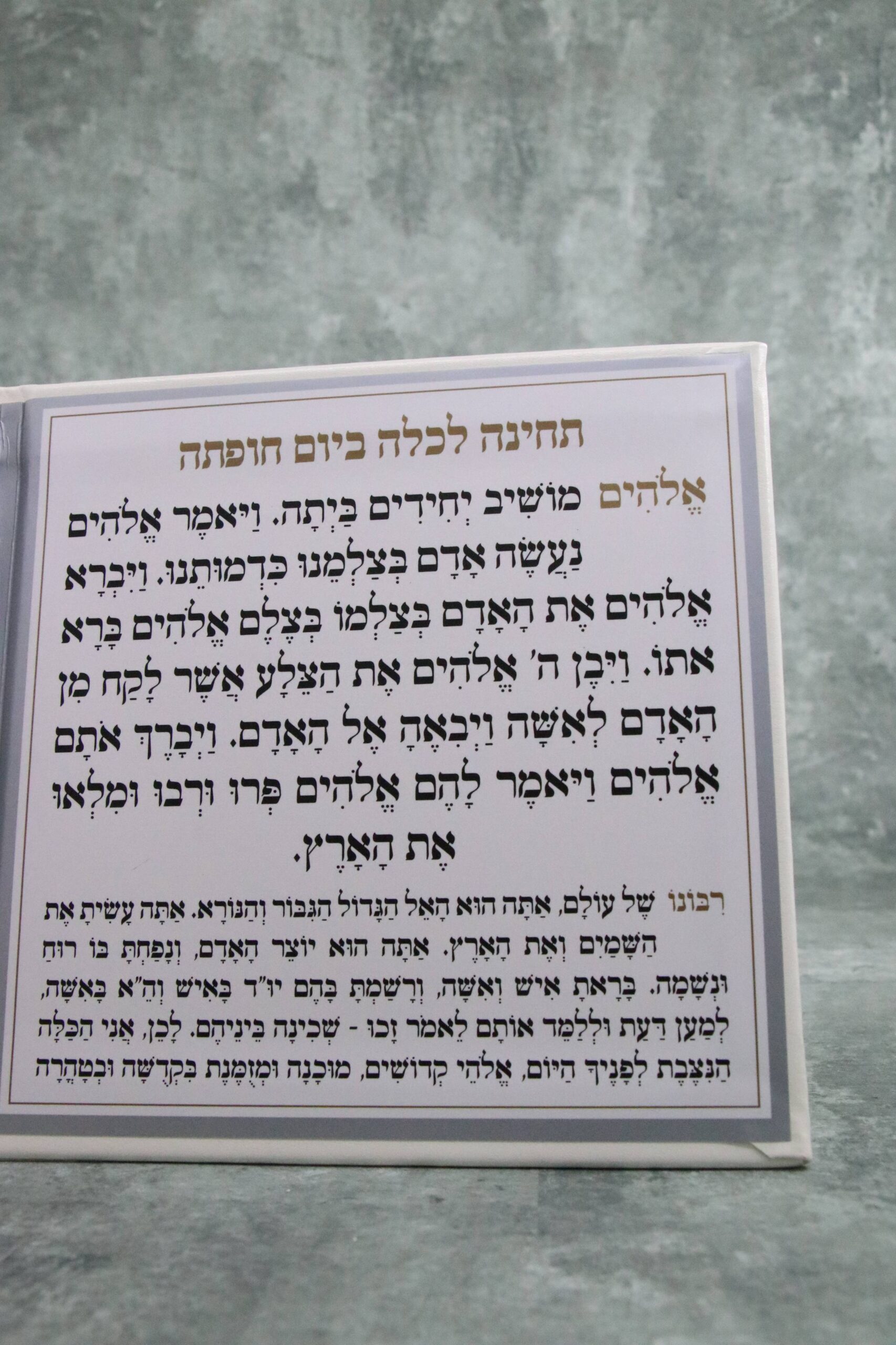 ברכון דמוי עור כריכה קשה השבחות זהב. בעיצוב יוקרתי ומהמם, נוסח עדות המזרח. גודל הברכון:16*16 ס"מ.ניתן להוסיף הקדשה אישית לפי בחירה.