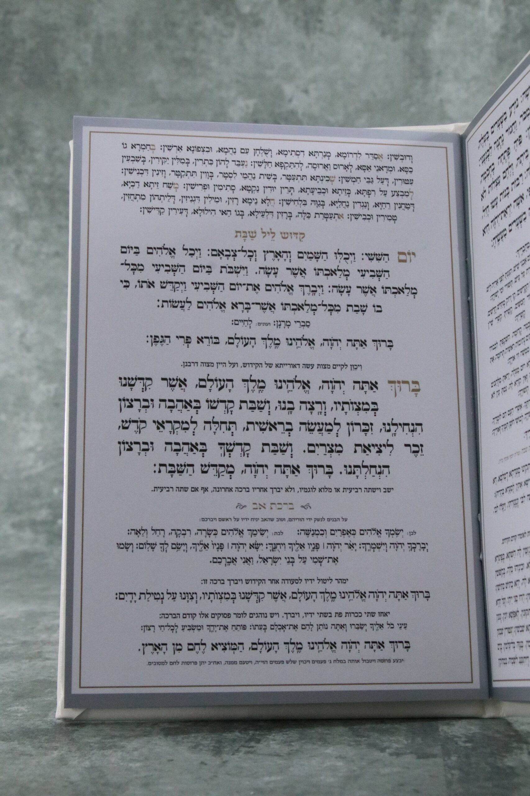 כולל בתוכו הדלקת נרות, קידוש של שבת, ברכת המזון והבדלה. נוסח עדות המזרח.גודל הברכון: 12*17 ס"מ.
