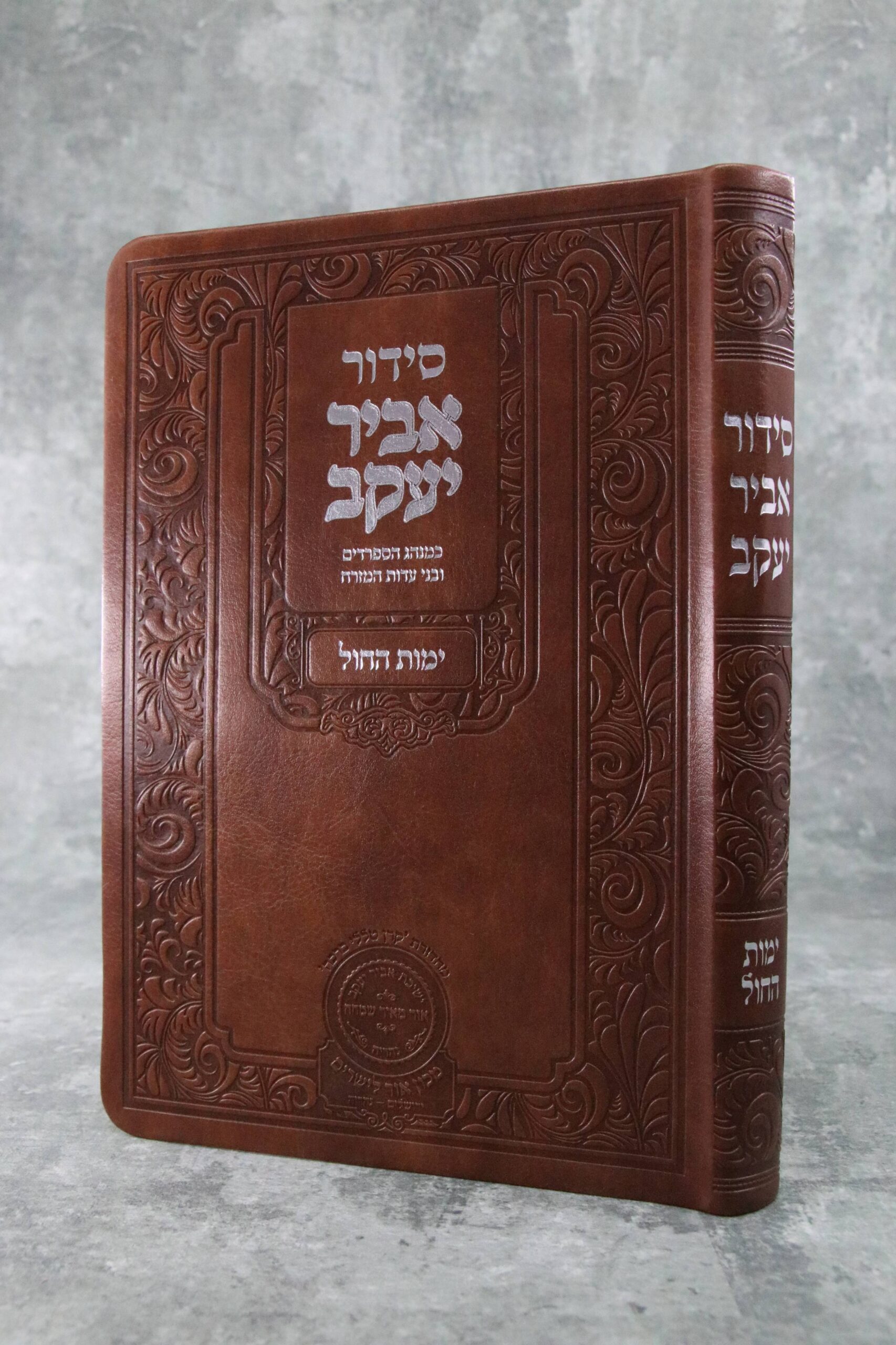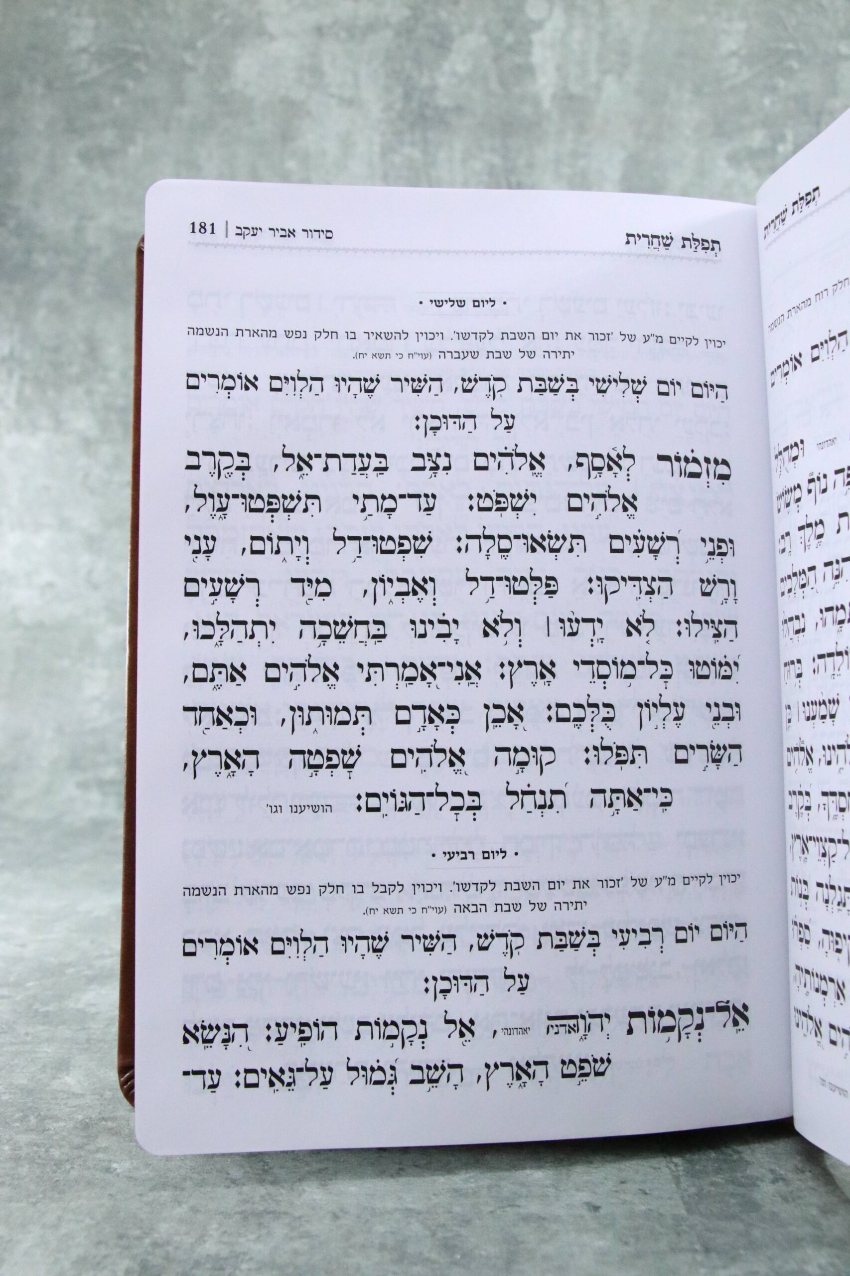 השבחות כסף, כתב ברור גדול וקריא. חריטות מיוחדות בהטבעת חום מושקעת, נוסח עדות המזרח. גודל הסידור: 20.5*14.5 ס"מ.