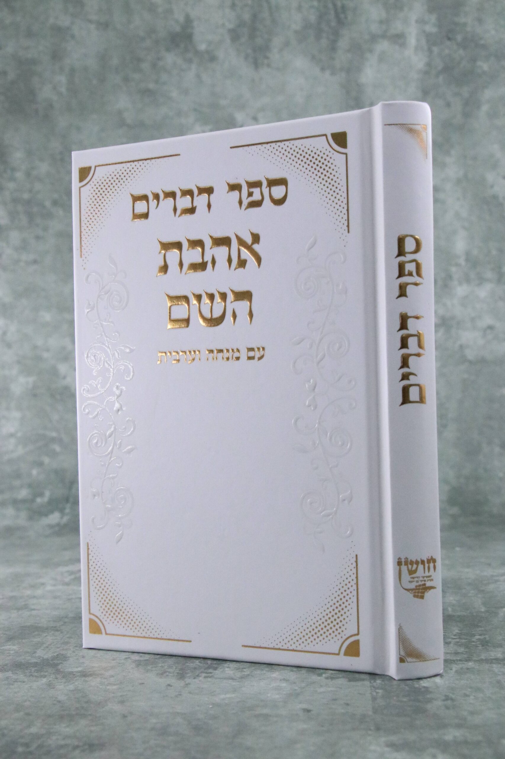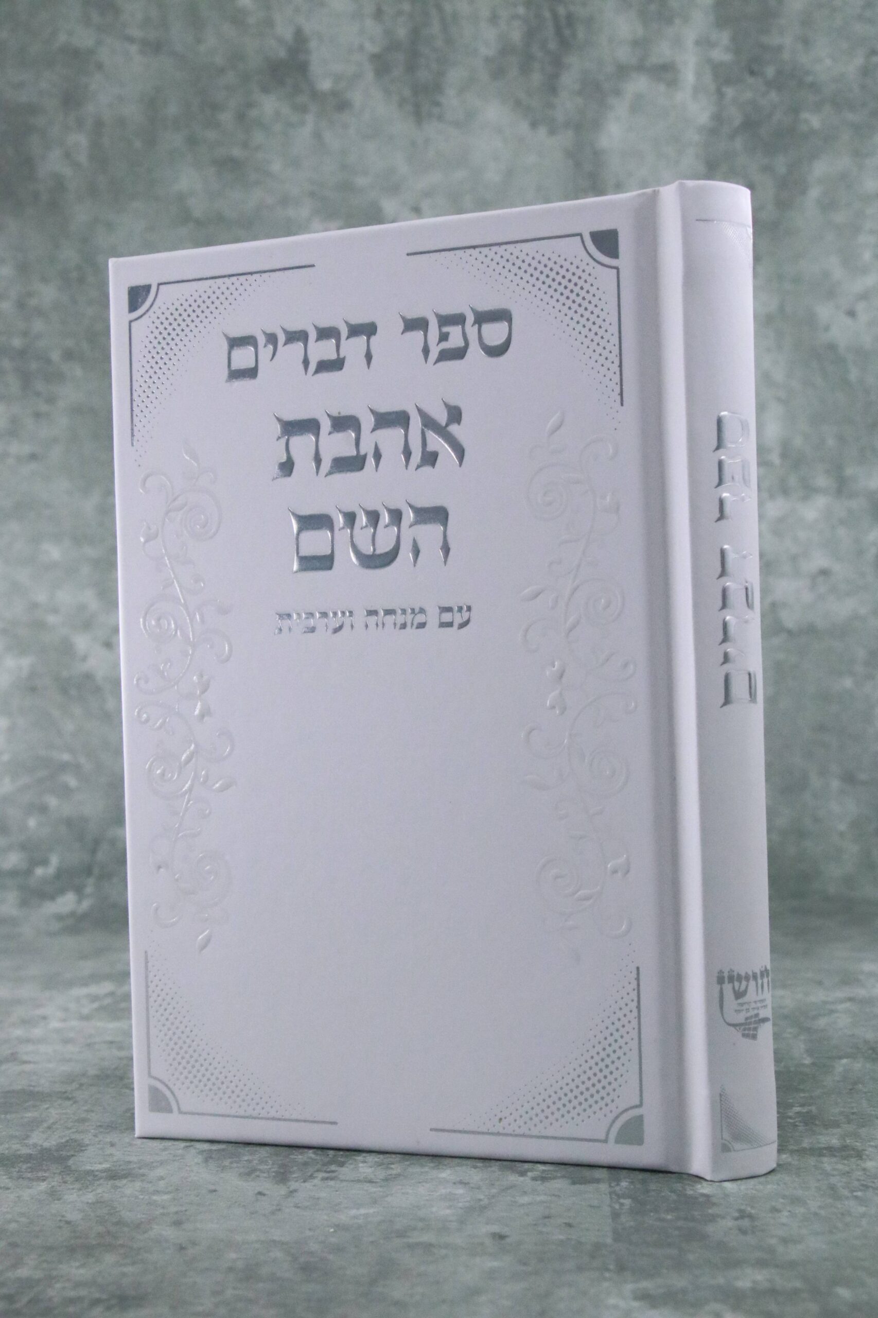 ספר בינוני כריכה קשה בציפוי למינציה מט. השבחות כסף או זהב לפי בחירה, נוסח עדות המזרח. מקום מיוחד להטבעה, עיצוב יוקרתי ומהמם. כולל בתוכו מנחה וערבית, ספירת העומר, ברכת המזון. שבע ברכות, איגרת הרמבן, נשמת כל חי ותפילת הדרך. גודל הספר: 12*17 ס"מ.ניתן להוסיף הקדשה אישית לפי בחירה.