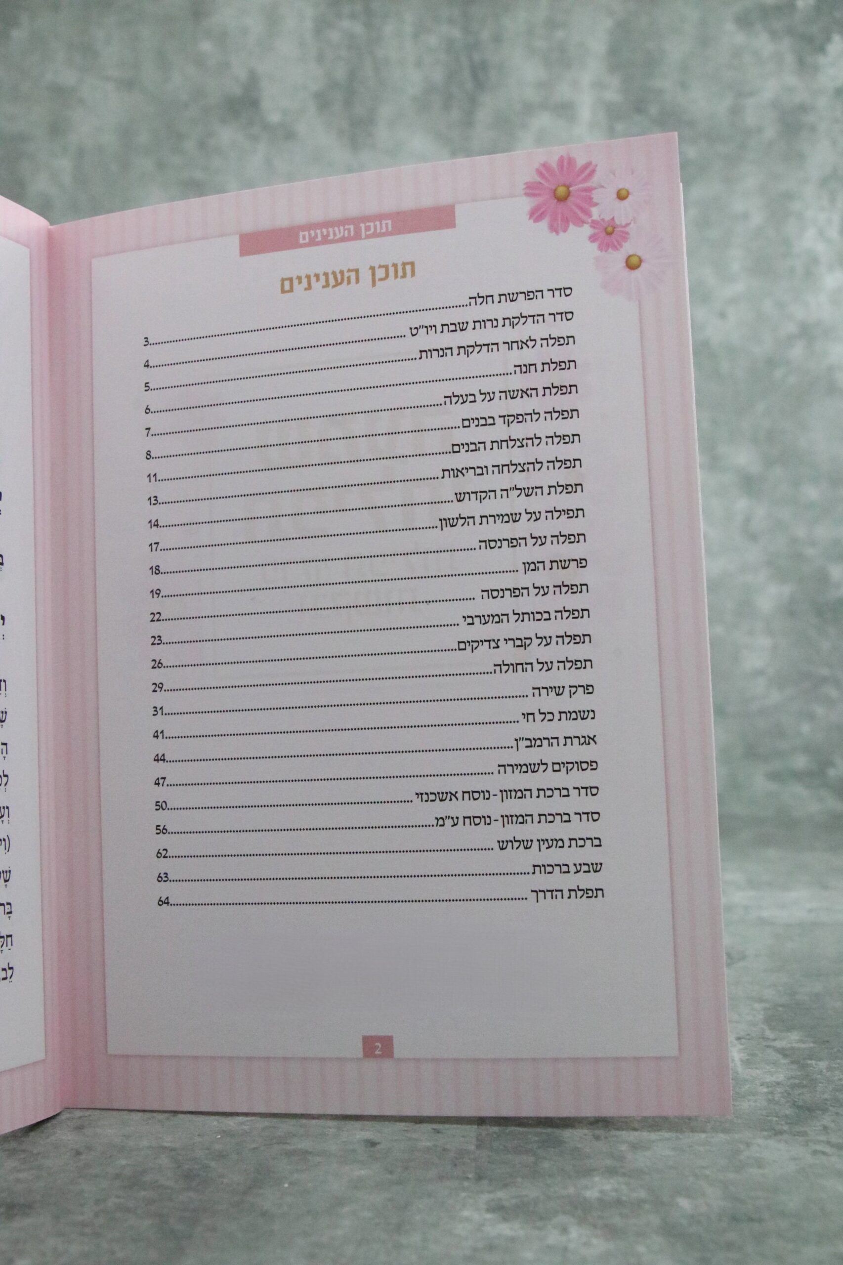 חוברת תפילות לאישה בינוני כריכה רכה בציפוי למינציה מט. בעיצוב יוקרתי ומהמם, נוסח עדות המזרח. כולל בתוכו: הדלקת נרות, הפרשת חלה, תפילה לבנים, ברכת המזון. תפילת השלה, תפילת חנה, ברכת המזון ועוד ועוד. גודל הברכון: 12*17 ס"מ.